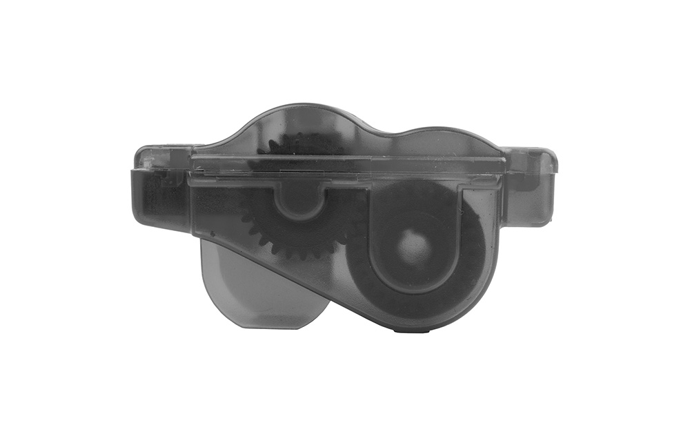 "Čistič reťaze z priehľadného tmavého plastu; Veľké nylonové kefy sa postarajú o dôkladné očistenie; Používanie nevyžaduje demontáž reťaze; Vhodné pre všetky rýchlosti; Váha: 115g"