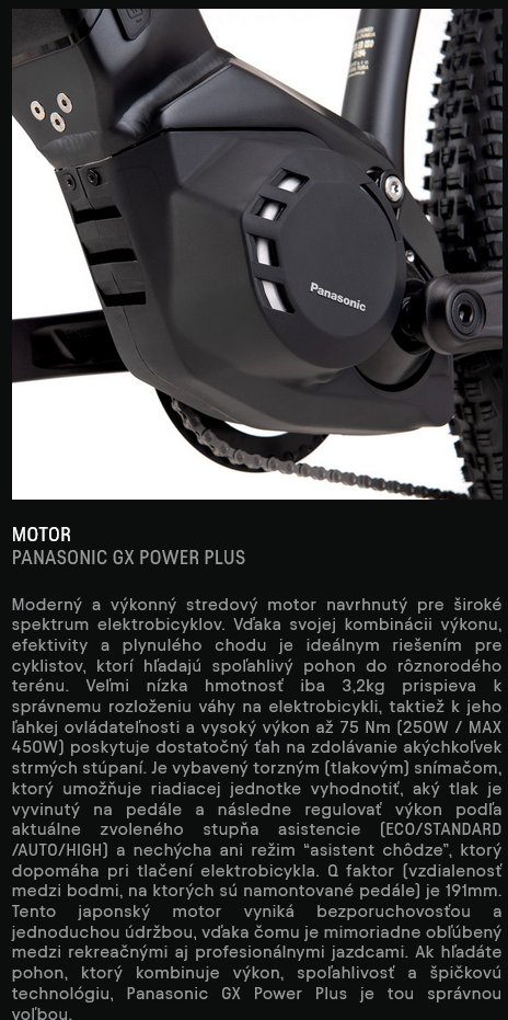 Motor : PANASONIC GX Power plus / 250W / 75Nm