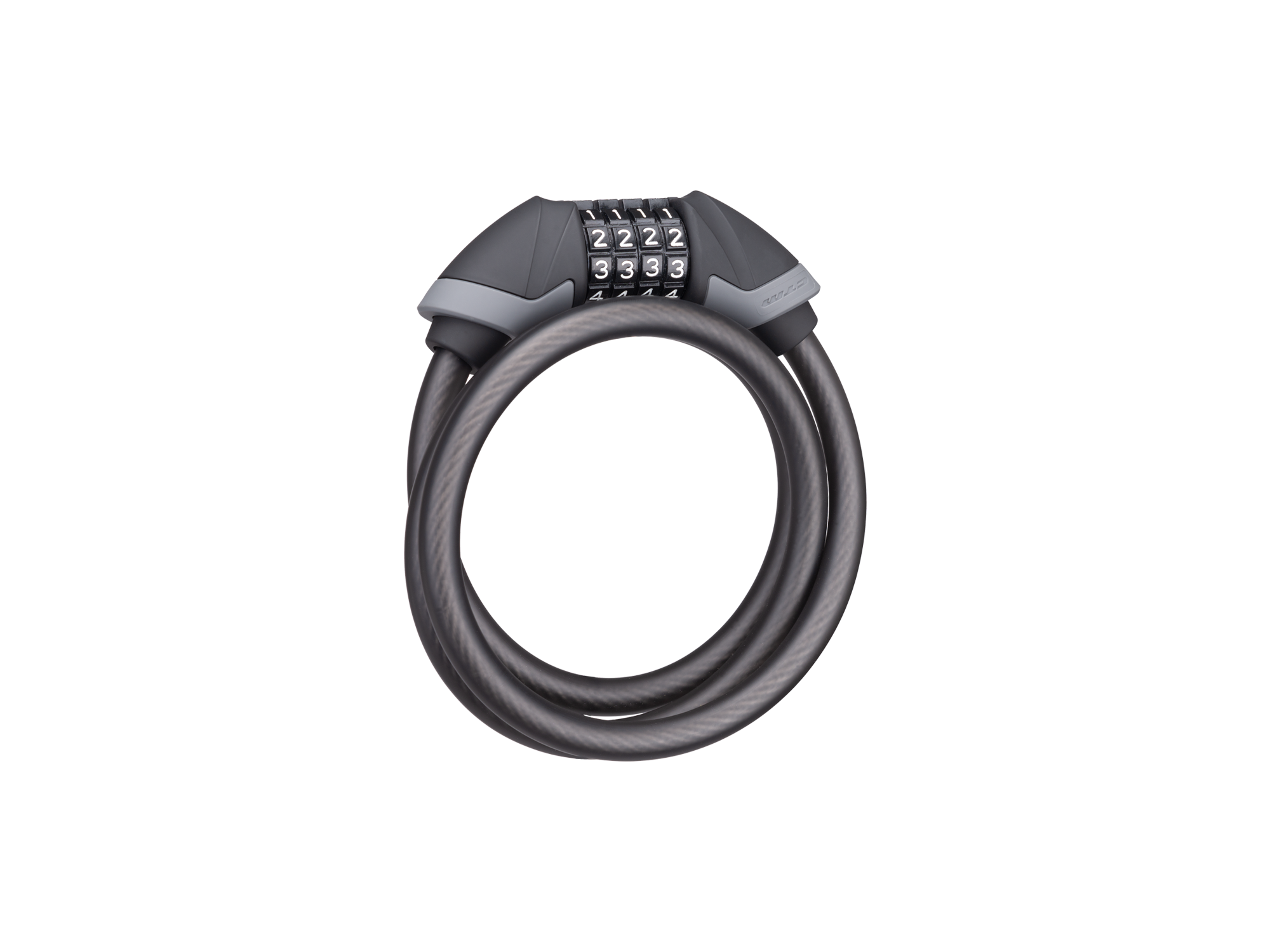 Špirálový kvalitný zámok na kód; Pogumovaná povrchová úprava hlavy a návleku; Extra odolné prevedenie; Rozmer: 12x1200 mm; Farba: matná čierna/šedá"