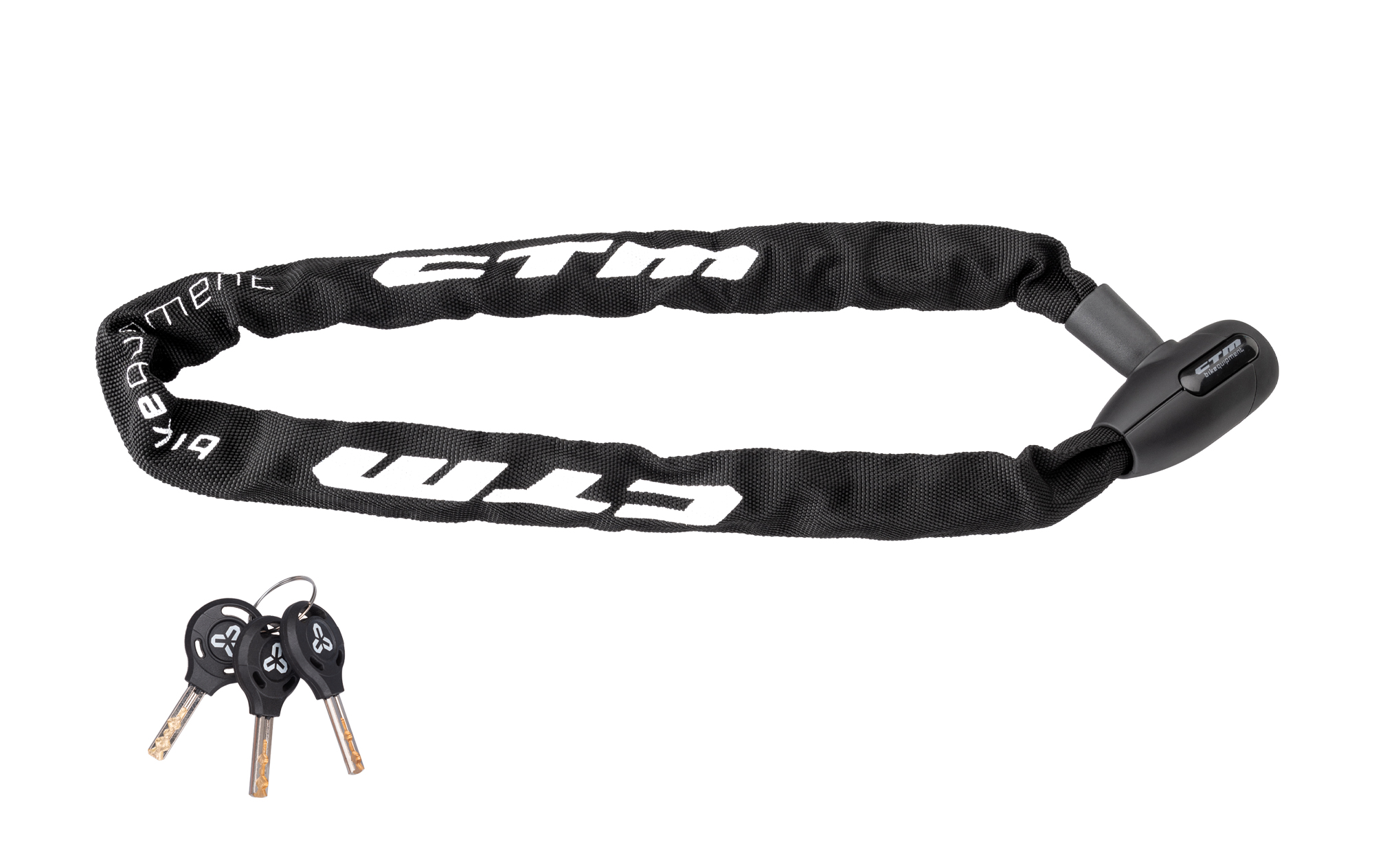 Reťazový kvalitný zámok na kľúče; Pogumovaná povrchová úprava hlavy a utesnený návlek na reťaz; Balenie obsahuje 3 kľúče; Extra odolné prevedenie; Rozmer: 6x900 mm; Farba: matná čierna