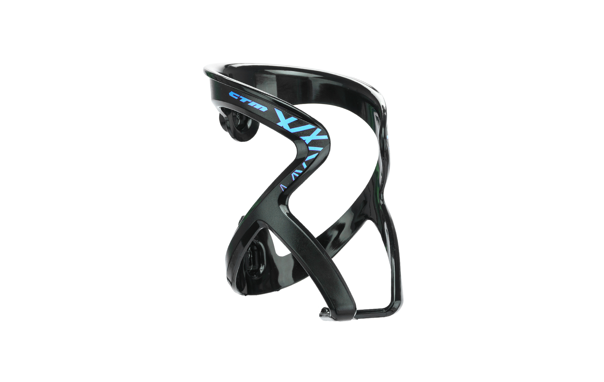 Plastový držiak na fľašky z pevného a flexibilného materiálu; Lesklo-matná úprava; Balenie obsahuje skrutky do rámu; Váha: 38g; Farba: čierna/modrá"