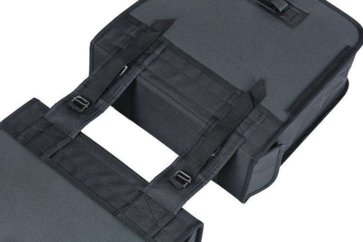 Hľadáte dvojitú tašku na bicykel s dostatočným priestorom pre vaše každodenné nákupy alebo predmety na celodenný výlet? Dvoj-taška na bicykel Basil Tour je luxusná taška na bicykel s objemom 28 litrov. Taška je vystužená a má uzatváracie chlopne, ktoré zabraňujú prieniku vody. Taška je vyrobená z vodoodolného polyestru 600D materiálu tarpaulin. Tašky majú zaoblený tvar, čo zabraňuje narážaniu piet do tašiek. Taška má zacvakávacie uzávery, ktoré sa ľahko otvárajú, takže na otvorenie tašky nie je potrebná žiadna sila.
