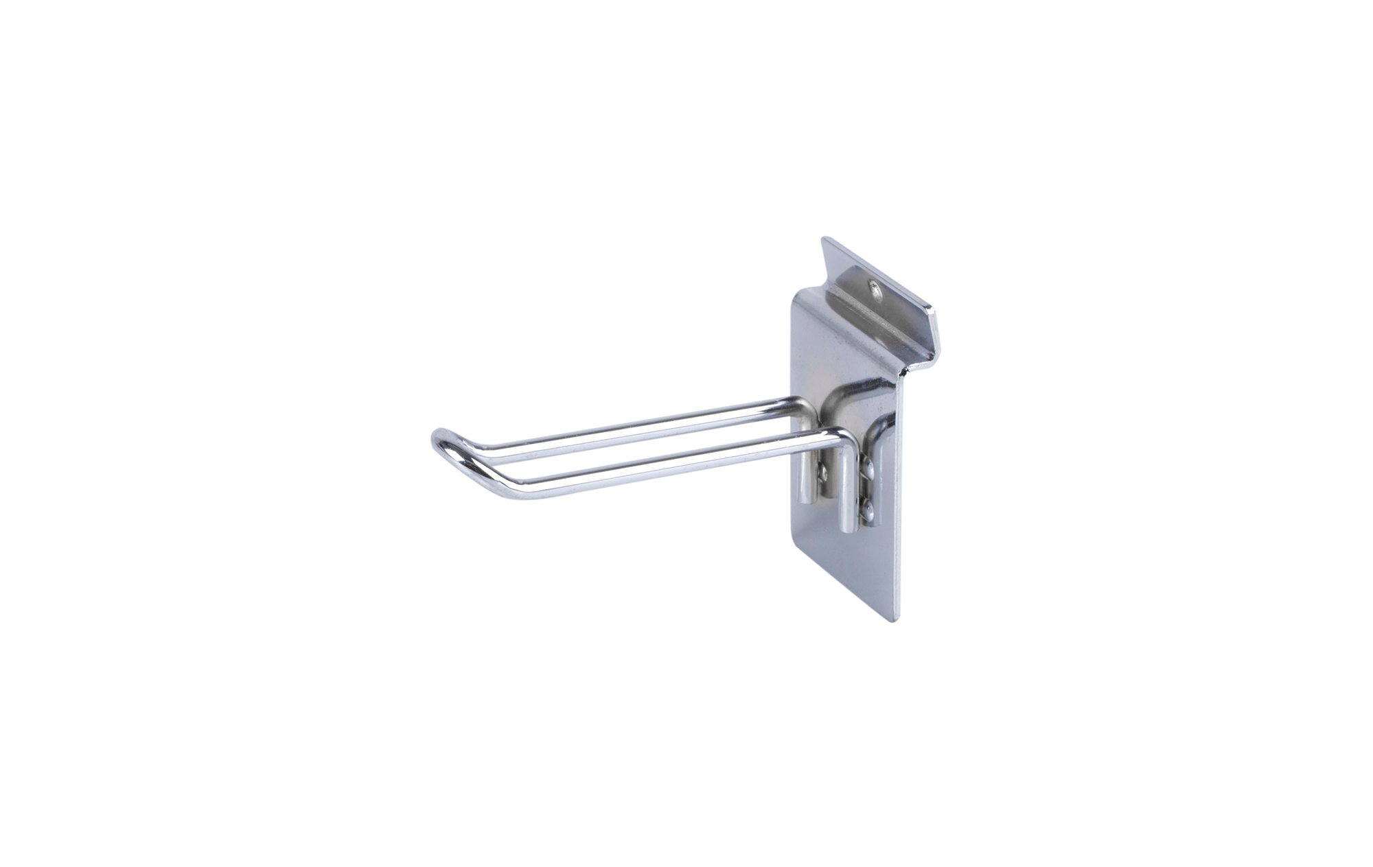 pochromovaný dvojitý hak na výstavnú stenu, dĺžka 100mm, šírka 28mm