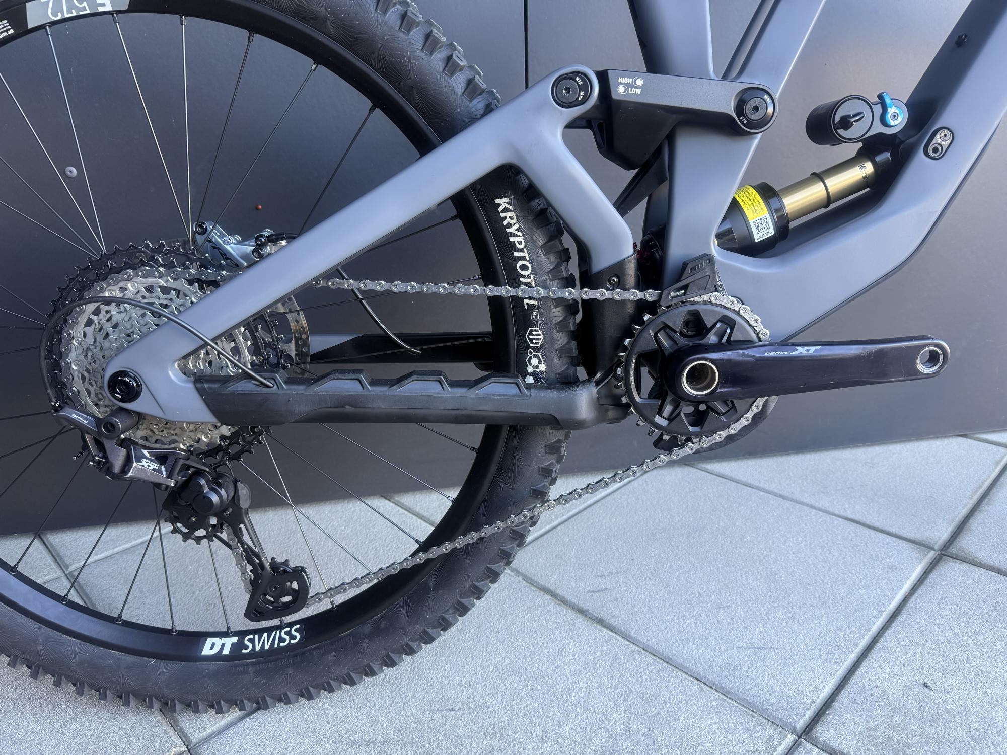 Karbónový rám je testovaný podľa normy kategórie 5 a je schválený pre celkovú hmotnosť až 120 kg (bicykel + jazdec). Pokročilá kinematika ukazuje svoje prednosti v náročnom teréne – optimalizovaný uhol tlmiča zaručuje citlivú a kontrolovanú odozvu aj pri tvrdých dopadoch. Tlmič umiestnený nízko znižuje ťažisko bicykla a zvyšuje jeho obratnosť – najmä v zákrutách, pri rýchlych zmenách smeru a na strmých technických zjazdoch.