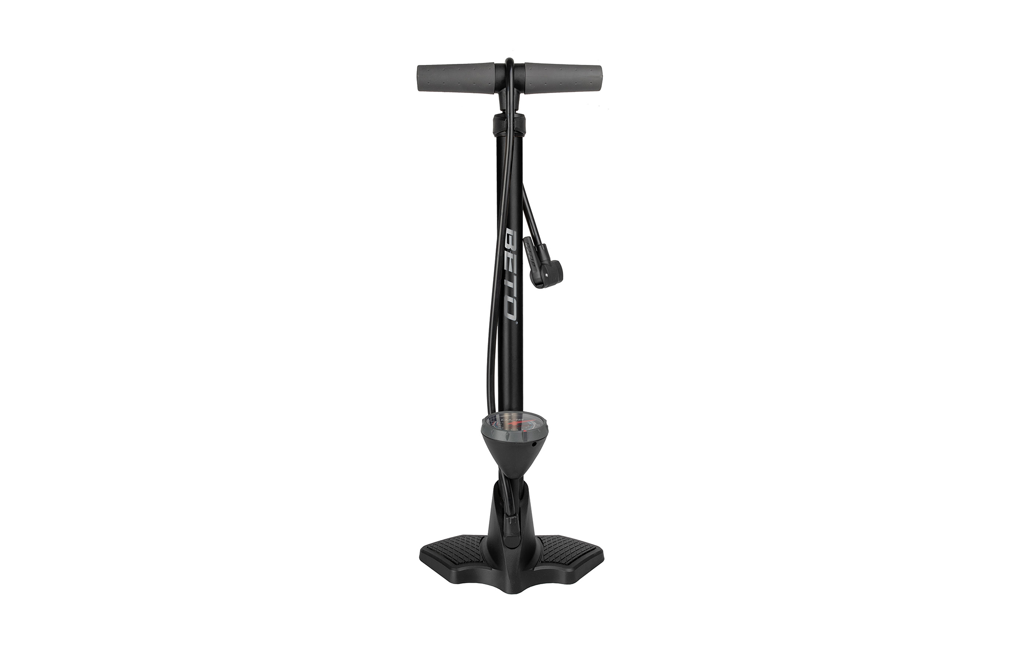 Hliníková nožná hustilka s manometrom (psi/bar) a univerzálnou hlavou ventilu; Pogumované držadlo a základňa pre komfortnú manipuláciu; Max. tlak: 160 psi; Typ ventilu: presta/autoventil/dunlop; Farba: čierna