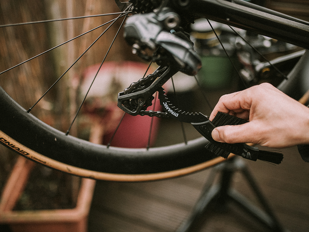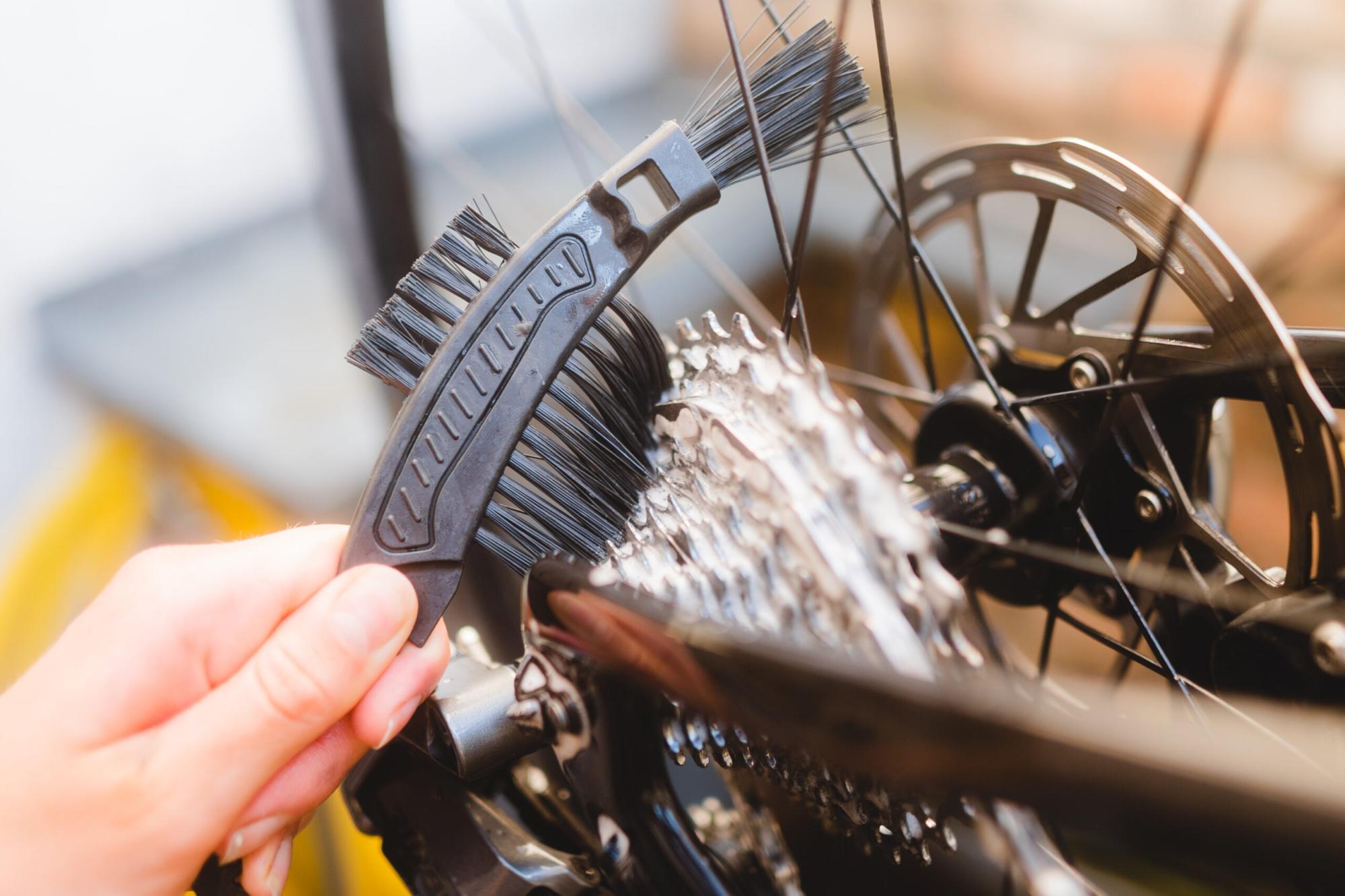 - odstránenie piesku a špiny medzi článkami reťaze a na kazete pomocou dlhých štetín,