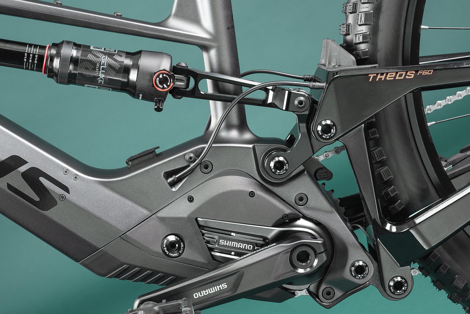 Model THEOS F60 je vybavený systémom odpruženia Think Link® , ktoré je navrhnuté pre maximálnu stabilitu a výkon v náročnom teréne. V kombinácii s vidlicou RockShox Domain R (29", Boost, 150 mm zdvih) a zadným tlmičom RockShox Super Deluxe Select+ RT (140 mm zdvih) tento systém zaisťuje hladkú jazdu, vynikajúcu trakciu a maximálnu kontrolu.
