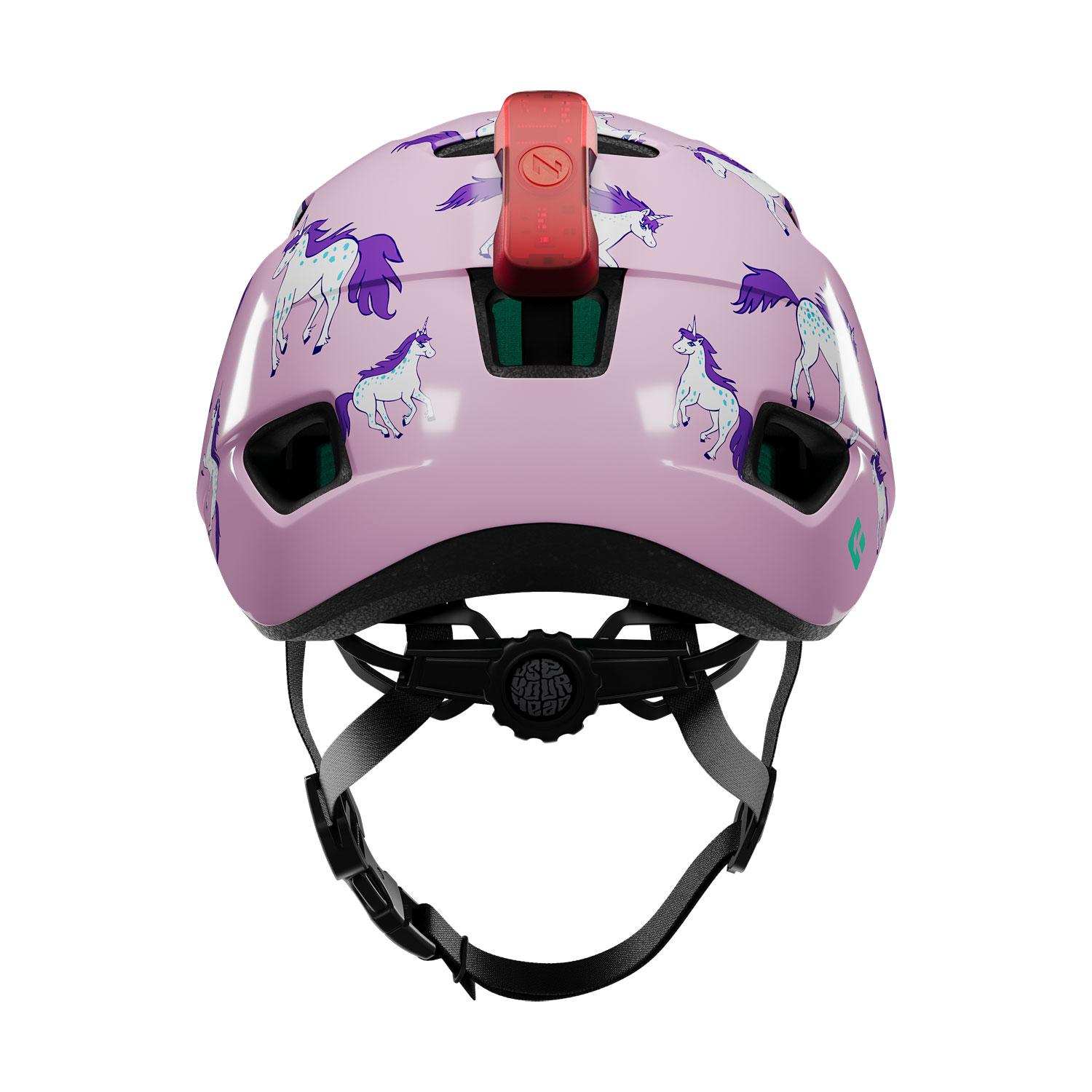 Zadná strana prilby je rovná, aby dieťa mohlo pohodlne sedieť v cyklo sedačke alebo vo vozíku a takisto je prispôsobená aj na nosenie copu.
