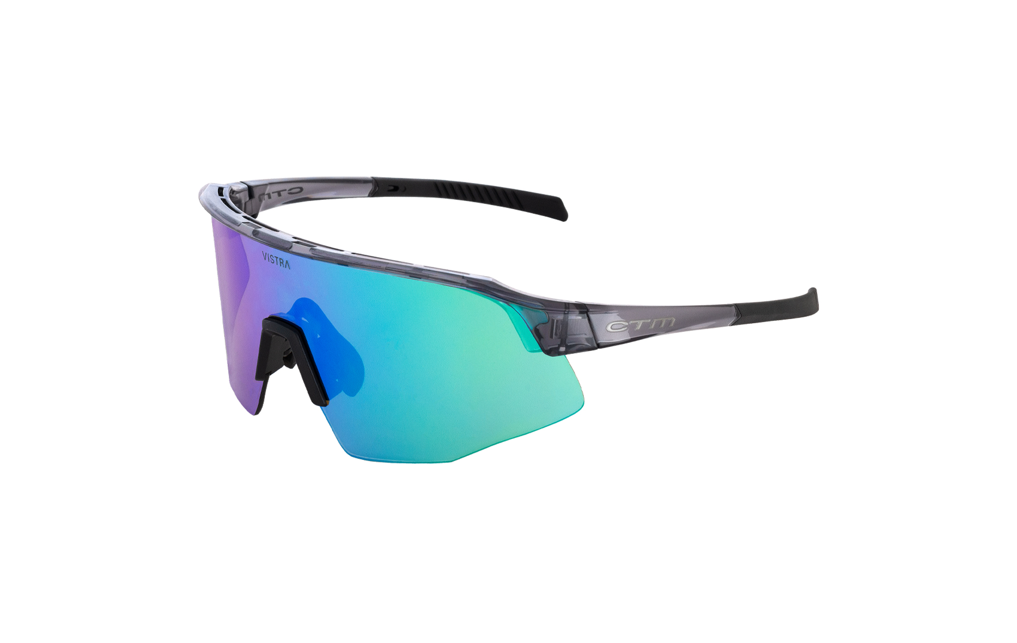 Slnečné okuliare CTM CULT s rámom z ľahkého a flexibilného materiálu TR90 (švajčiarsky grilamid); Flexibilné TPR gumové stráničky pre doladenie ideálnej polohy na hlave; Šošovky s anti-scratch a anti-fog úpravou vyrobené z overeného polykarbonátu; Plochý a zaoblený tvar šošovky navrhnutý tak, aby dokonale sedel na tvári a neskresľoval videnie; Nastaviteľný nosník, ktorý sa dokáže prispôsobiť na každý tvar nosu; Vymeniteľné šošovky v balení: číre (cat.0) do tmavých a nočných podmienok; Ochrana UV400; Vrecko z mikrovlákna, ktoré zároveň slúži aj ako handrička na leštenie a tvrdý obal na zips sa postarajú o údržbu a ochranu celého setu okuliarov; Hlavné šošovky s VISTRA technológiou vylepšeného vykresľovania kontrastov a farieb pomáha mať lepší a rýchlejší odhad vzdialenosti, smeru a detailov pri akejkoľvek športovej aktivite:; Crystal šedé - dymový základ so zelenou REVO úpravou, kat.3; Farba: crystal šedá