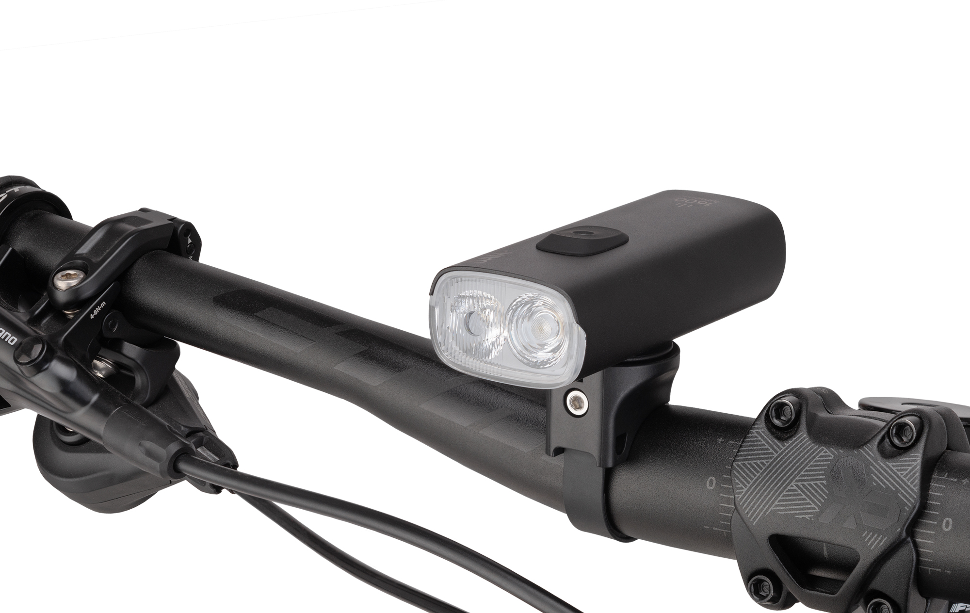 Predné výkonné osvetlenie s možnosťou dobíjania cez USB-C; Svietivosť: 1600 lumenov (2x Luminus SST-40-WCS-F50-P2/N5); Nová dvojitá šošovka so záplavovým širokým lúčom do blízka v kombinácii s ďalekým bodovým lúčom je ideálne pre použitie na ceste aj na trailoch; Diaľkový ovládač na riadidlá pre jednoduchšie ovládanie funkcií; Powerbank funkcia (5V 2A); Ľahká a kompaktná konštrukcia z prémiového hliníku; Dosah svetelného lúča 140m s neoslňujúcim rozptylom; Funkcie: záplavové svetlo (13%-25%-50%) - hybridné (diaľkové) svetlo (25%-50%-100%) - blikanie denné (0%-100%) - blikanie nočné (25%-100%); Výdrž batérie podľa režimu: záplavové svetlo 13% (10:00h) – 25% (4:30h) – 50% (3:00h) / hybridné (diaľkové) svetlo 25% (4:30h) – 50% (3:00h) – 100% (1:30h) / blikanie denné (12:00h) – blikanie nočné (2:30h); Vodoodolné IPX7 do hĺbky 1m; Pamäť režimov; Batéria 21700 s 3,6V 5400 mAh s indikátorom stavu batérie a dobou dobíjania 2,5 hodiny; Prepínanie medzi režimami dvojklikom vypínača, medzi jasom kliknutím a vypnutie/zapnutie podržaním vypínača; Krátke stlačenie vypínača aktivuje indikátor batérie (ak je svetlo vypnuté); Univerzálne montáže pre rôzne priemery riadidiel (25,4-35mm) s Garmin základňou (kompatibilné); Balenie obsahuje USB-C kábel, základňu na riadidlá s vymeniteľnými popruhmi, Gopro platničku, 3mm kľúč; Rozmer: 96x41x27 mm; Váha: 190g; Farba: čierna