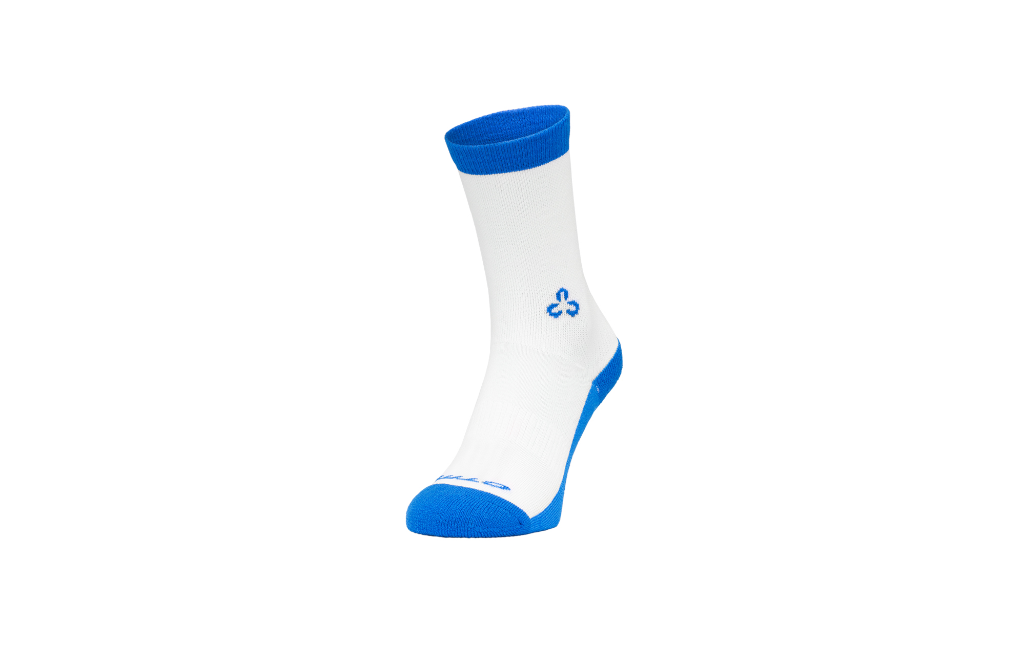 Technické ponožky z polyamidu; Tenké a priedušné so semi-compresným strihom; Zosilnené v oblasti päty a špičky; Tlakové zóny v oblasti nártu a achilovky, ktoré podporujú prúdenie krvi; Výška lýtka 18''; Veľkosť: 43-46; Materiál: Polyamid 93%, Bavlna 7%; Farba: biela-modrá