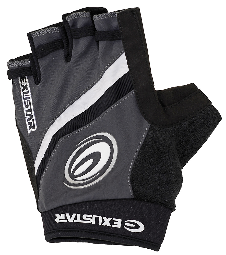 polprstové rukavice EXUSTAR s výstupkami proti šmýkaniu, s potítkami, s ľahkým odopínaním časti vyrobené z Lycry, dajú sa prať, priedušné, veľmi dobré pre Grip Shift radenie, elastické pásy na zápästí, balené na blistri EXUSTAR -veľ. S