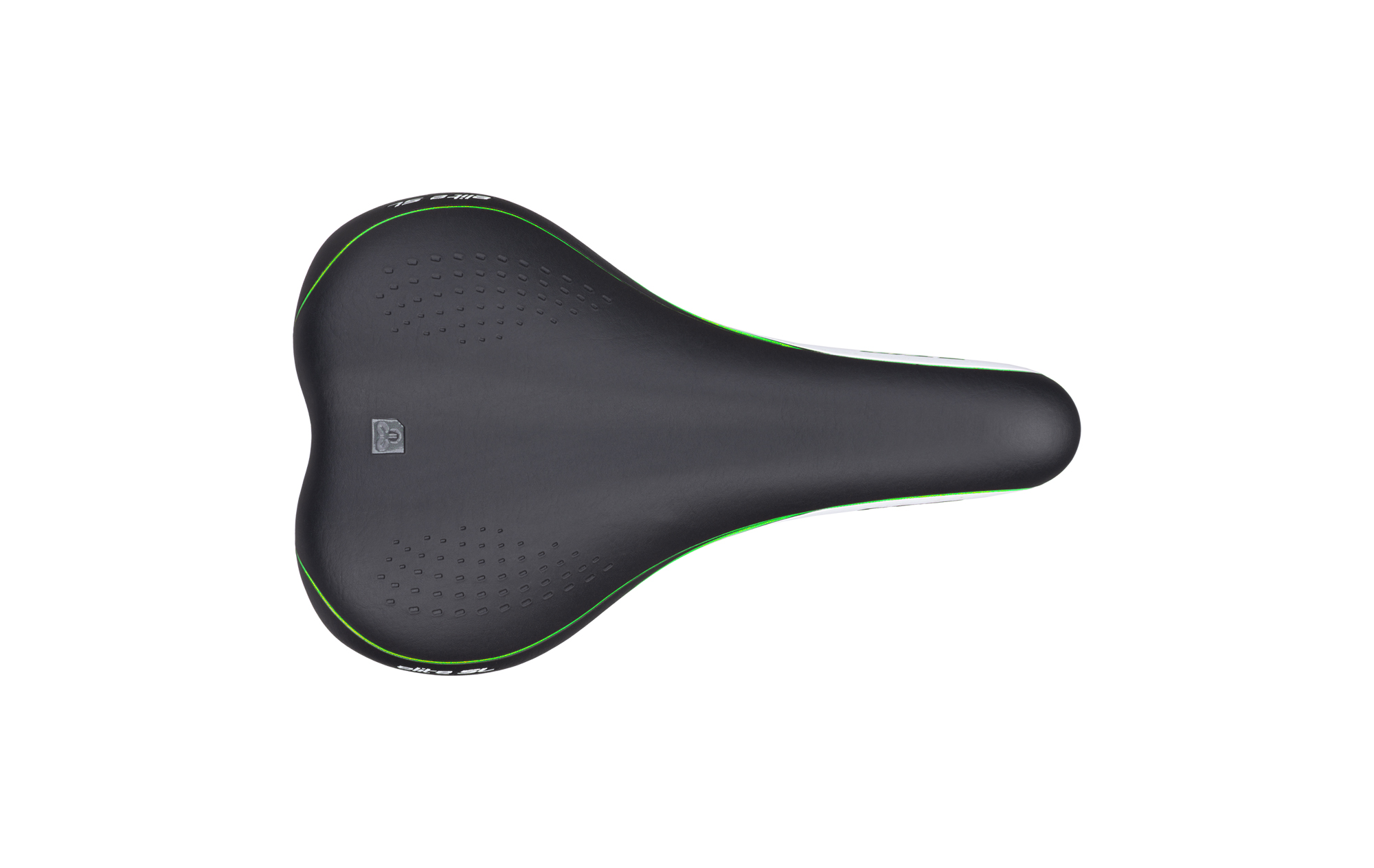 Pohodlné dámske sedlo bez zámku, CrMo lyžiny; Rozmer: 251x157 mm; Váha: 365g; Farba: čierna/zelená