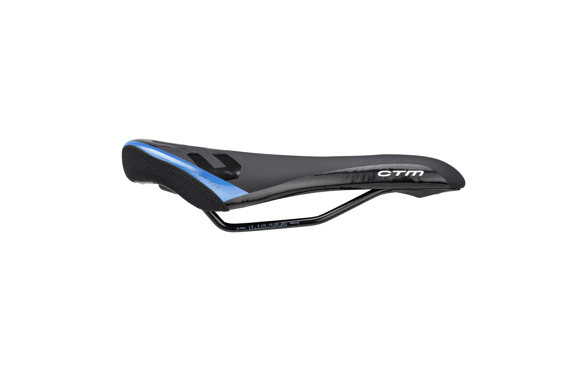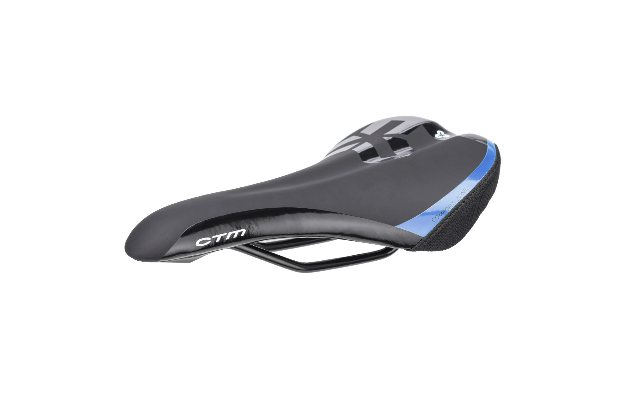 Pohodlné MTB sedlo bez zámku, CrMo lyžiny; Rozmer: 280x150 mm; Váha: 340g; Farba: čierna/perleťová modrá"