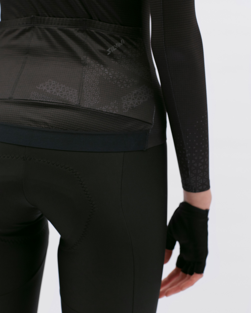 Valfura je dámsky cyklistický dres s dlhými rukávmi vyrobený z pružného, ľahkého a veľmi priedušného materiálu Light MESH. Dres má úzky strih a zadná strana je výrazne predĺžená pre lepšiu ochranu pred chladom. V prednej časti je osadený celorozopínacím zipsom YKK®, na zadnej časti dresu nájdete klasickú otvorenú trojvrecko pre pohodlné uloženie drobností. Lemy dresu sú bezšvíkové a lepené, zadný elastický lem je vybavený vnútornou protišmykovou silikónovou potlačou, ktorá pomáha udržať dres na mieste počas jazdy. Celý dres obsahuje nevyhnutné bezpečnostné reflexné prvky v rovnakej farbe ako dres, nevyhnutné pre viditeľnosť cyklistu v zlých svetelných podmienkach. Tento dres je ideálny pre cyklistov, ktorí hľadajú kombináciu komfortu a elegancie. Materiálové zloženie: HLAVNÝ MATERIÁL: 90% POLYESTER, 10% SPANDEX