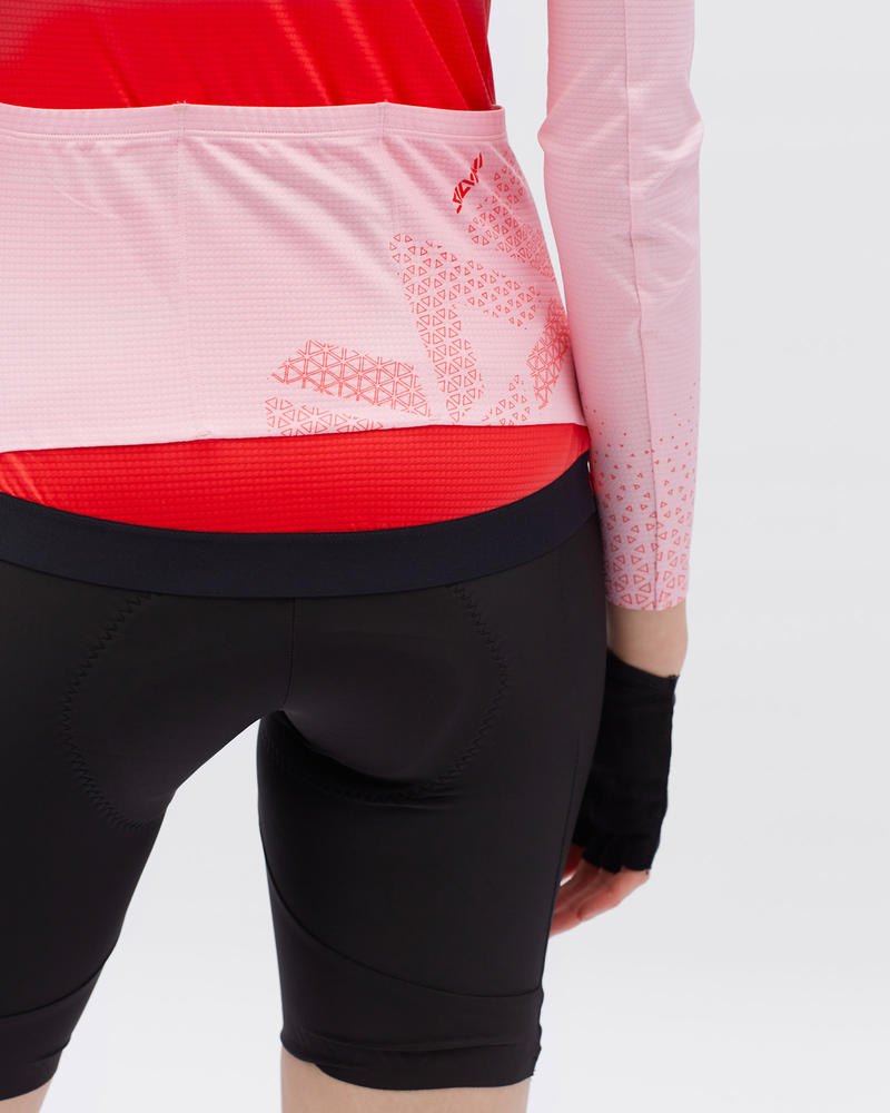 Valfura je dámsky cyklistický dres s dlhými rukávmi vyrobený z pružného, ľahkého a veľmi priedušného materiálu Light MESH. Dres má úzky strih a zadná strana je výrazne predĺžená pre lepšiu ochranu pred chladom. V prednej časti je osadený celorozopínacím zipsom YKK®, na zadnej časti dresu nájdete klasickú otvorenú trojvrecko pre pohodlné uloženie drobností. Lemy dresu sú bezšvíkové a lepené, zadný elastický lem je vybavený vnútornou protišmykovou silikónovou potlačou, ktorá pomáha udržať dres na mieste počas jazdy. Celý dres obsahuje nevyhnutné bezpečnostné reflexné prvky v rovnakej farbe ako dres, nevyhnutné pre viditeľnosť cyklistu v zlých svetelných podmienkach. Tento dres je ideálny pre cyklistov, ktorí hľadajú kombináciu komfortu a elegancie. Materiálové zloženie: HLAVNÝ MATERIÁL: 90% POLYESTER, 10% SPANDEX