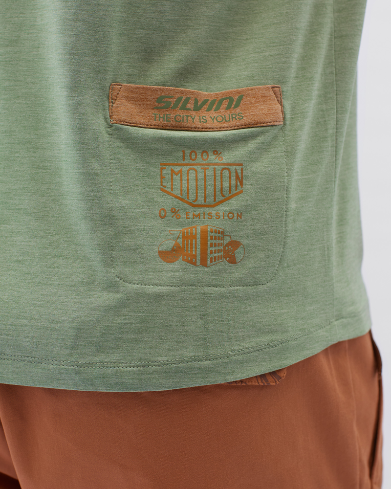Calvisio je pánske urban tričko s krátkym rukávom vyrobené z mäkkého recyklovaného materiálu s prímesou modalu. Tričko je elastické, priedušné a má praktické vrecko s ozdobným motívom na hrudi a na chrbte. Tričko je vhodné aj na voľný čas.