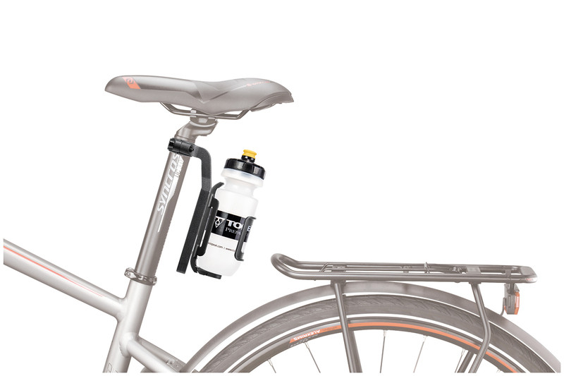 Zvislý duralový zvislý držiak na stĺpik sedla (sedlovku) pre uchytenie košíka na fľašu, vhodný pre elektrobicykle alebo bicykle s malým rámom.