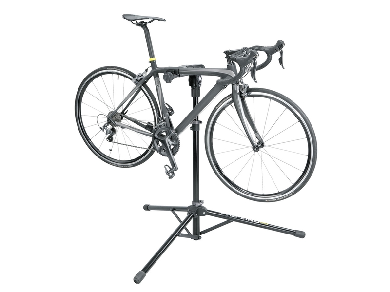 Kompaktný skladací servisný / montážny stojan v profi kategérii so zabudovanou digitálnou váhou, na stabilnej trojnožkovej základni s gumennými päticami, s rýchlopínačom pre rýchle a jednoduché zloženie - vynikajúca voľba pre servisovanie bicykla aj na cestách a závodoch