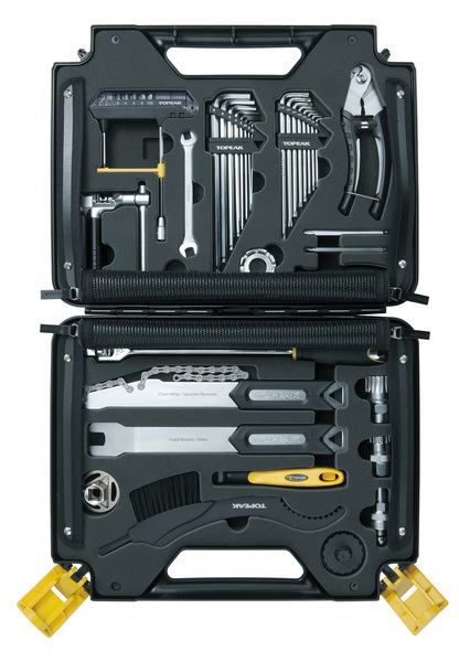 Príručná sada dielenského profi náradia v malom kompaktnom kufríku do ruky, ideálna do dielne, na preteky alebo do domácej výbavy každého náročného cyklistu • kufrík obsahuje 18 dielenských nástrojov v profi kvalite na údržbu a opravu bicyklov