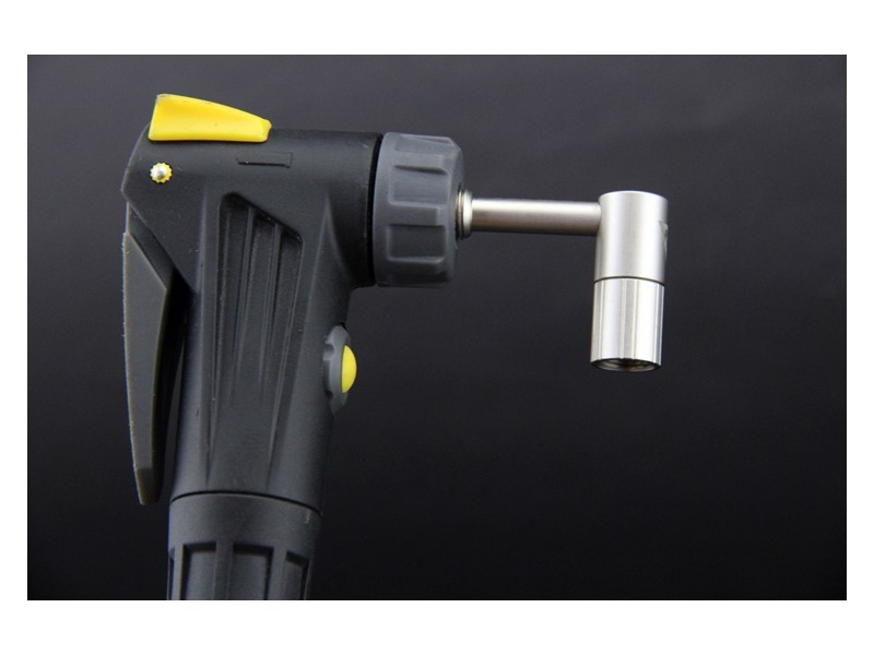 90-stupňový mosadzný ventilový adaptér na auto ventil, vhodný na hustenie odpružených vidlíc, tlmičov alebo malých kolies a vozíkov s problematickým prístupom k ventilu • vnútorná spätná klapka izoluje hustilku od ventilu tlmiča a zabraňuje tak než
