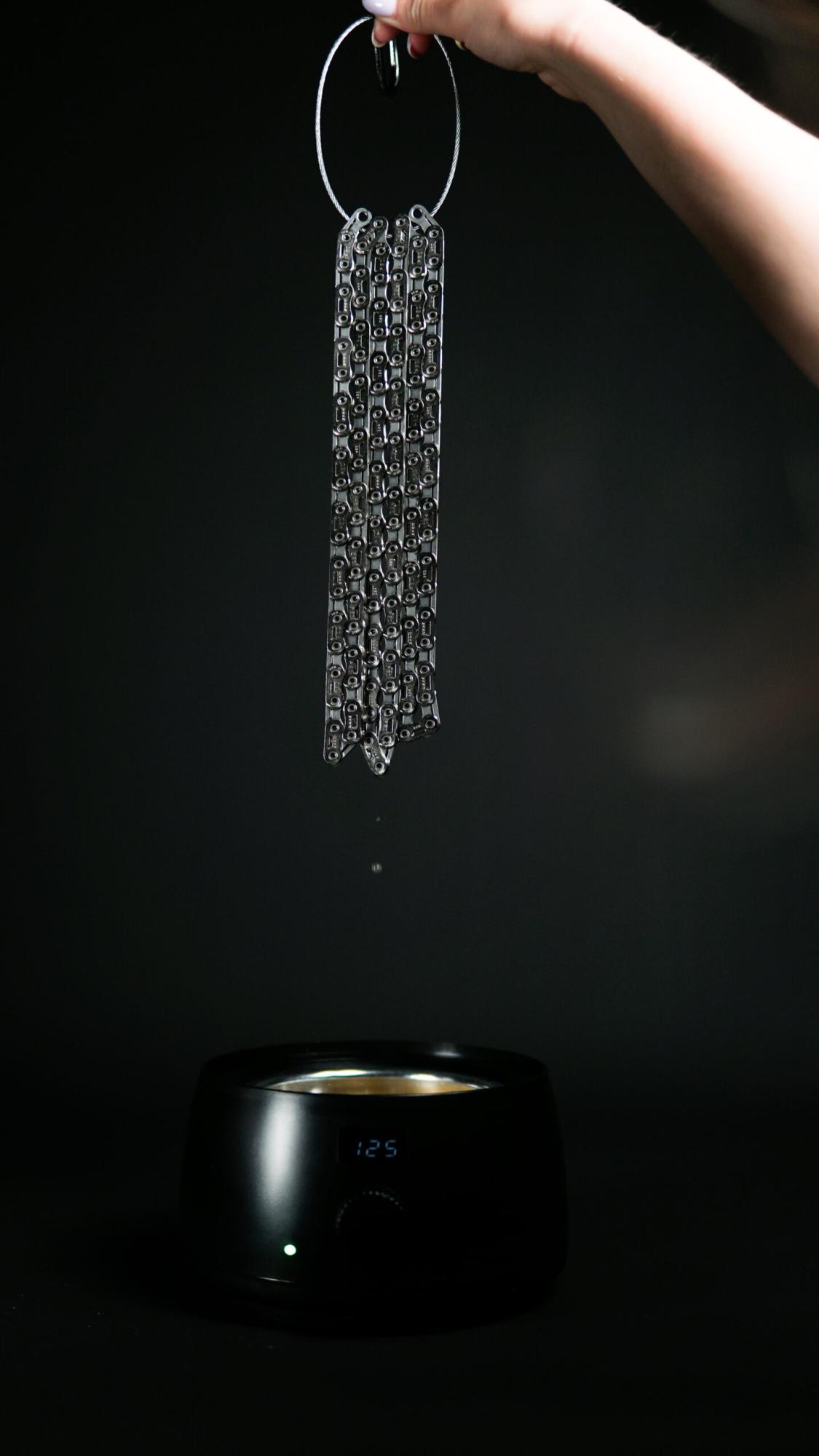 - Po prvých 5 km jazdy sa reťaz „zabehne“ – prebytočný vosk sa vytlačí a povrch sa optimalizuje. Zvyšky vosku jednoducho odstráň suchou handričkou. Pred ďalšou aplikáciou stačí reťaz utrieť a znovu ponoriť do vosku – nie je potrebné opätovné odmasťovanie.