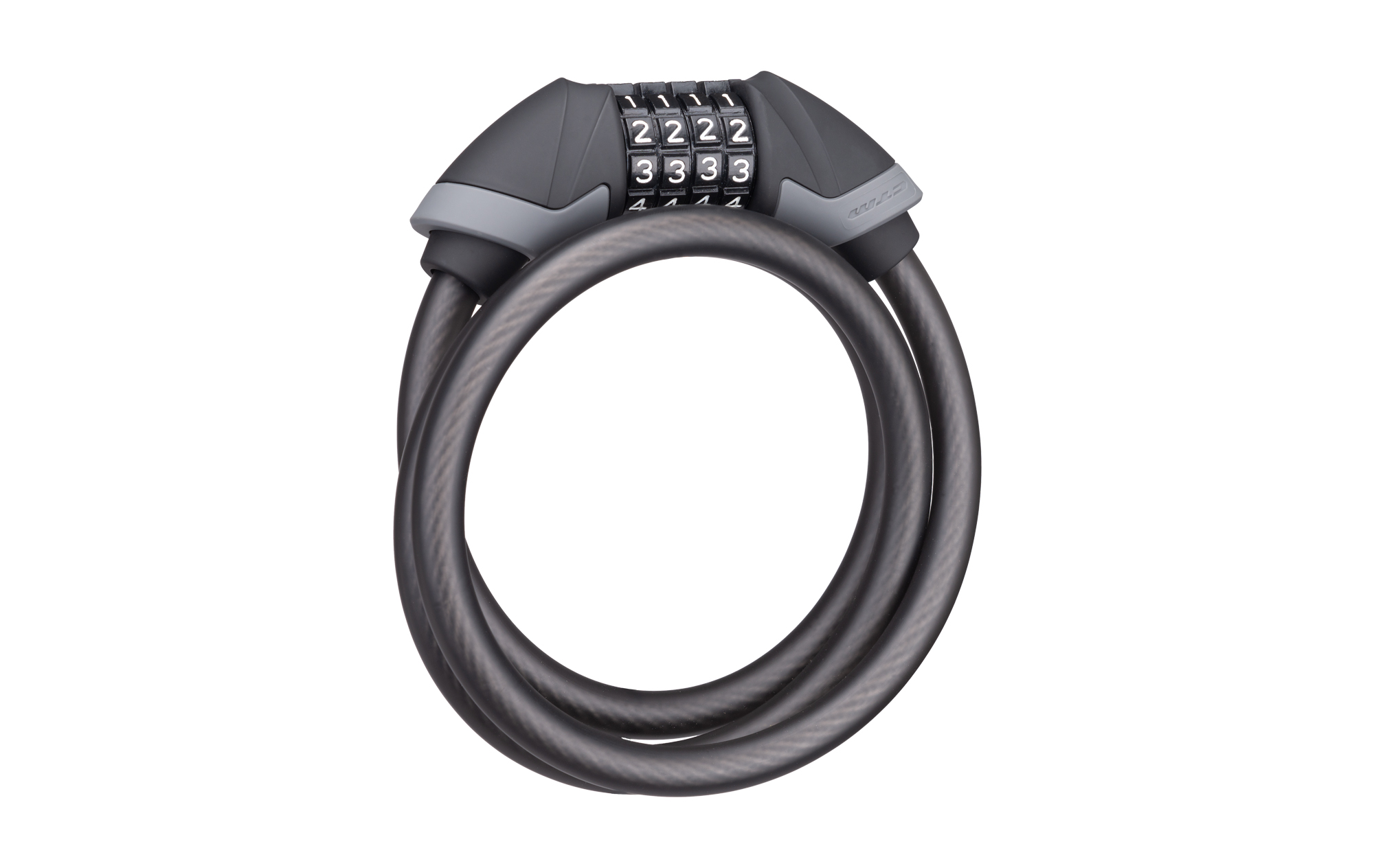 Špirálový kvalitný zámok na kód; Pogumovaná povrchová úprava hlavy a návleku; Extra odolné prevedenie; Rozmer: 12x1200 mm; Farba: matná čierna/šedá"