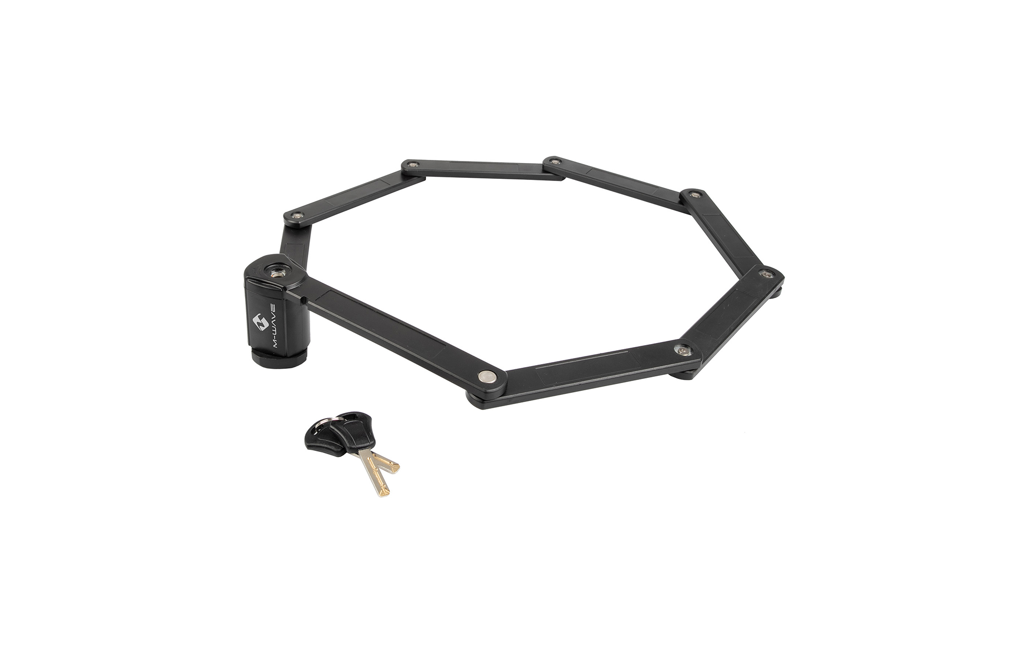 Skladací kovový zámok na kľúče; Poplastovaná povrchová úprava; Rozmer:8x25x165; 8-článkový; Farba: čierna; Balený na blistri.